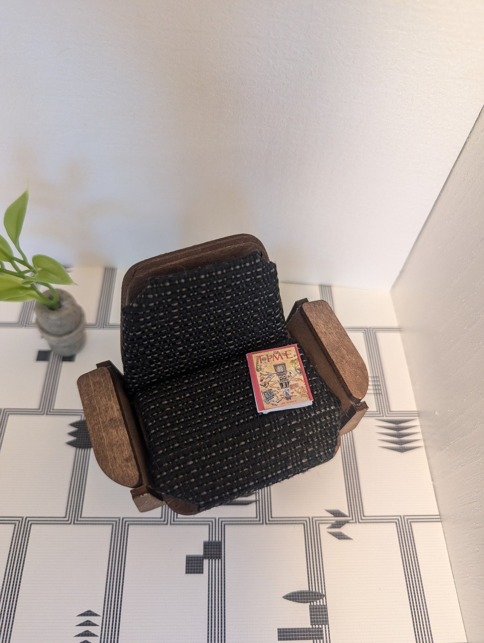 Whether you're a dedicated dollhouse enthusiast or a lover of all things vintage, this miniature MCM armchair is a must-have. Its timeless design and exquisite craftsmanship will add a touch of sophistication to your miniature collection.