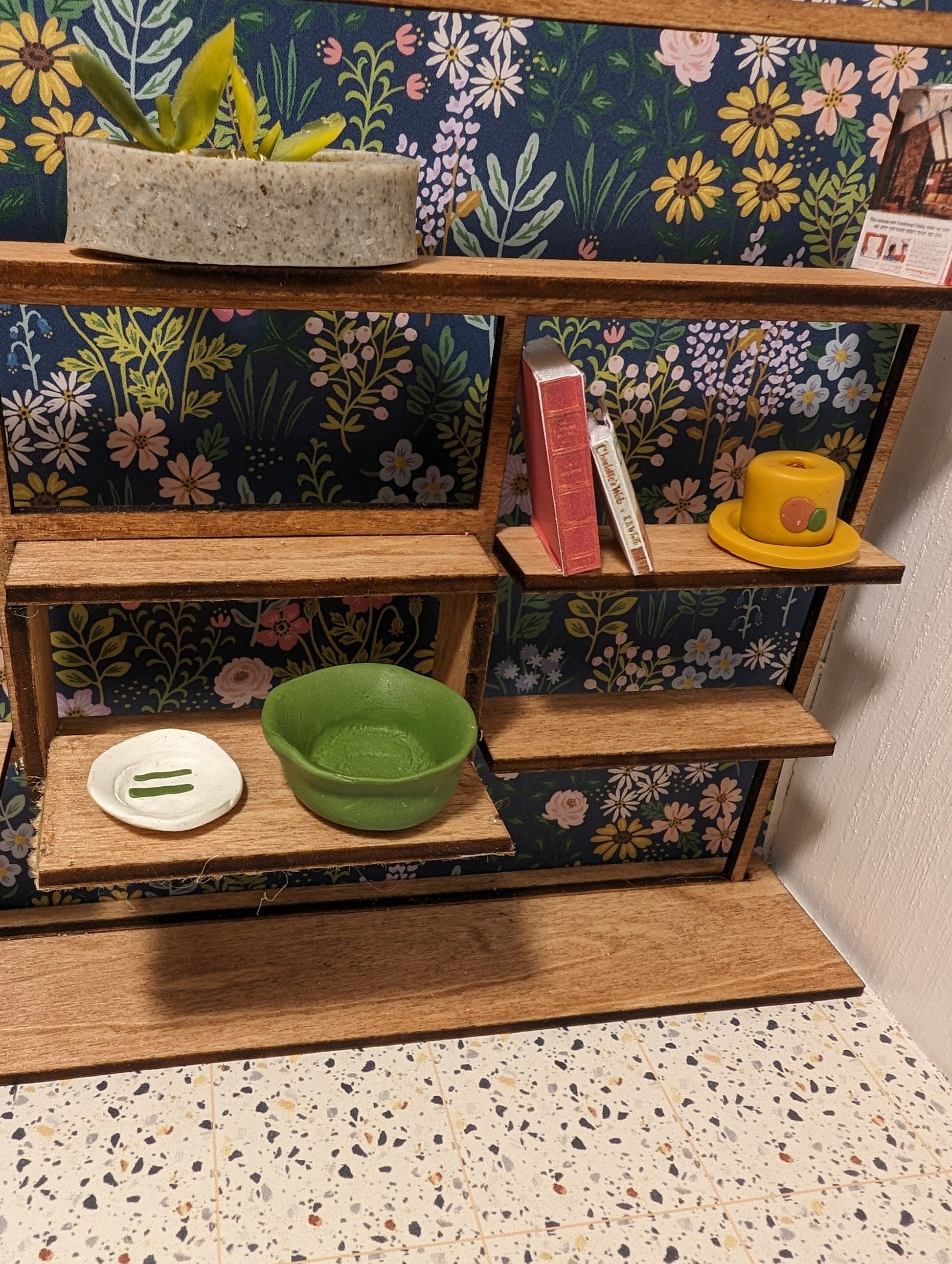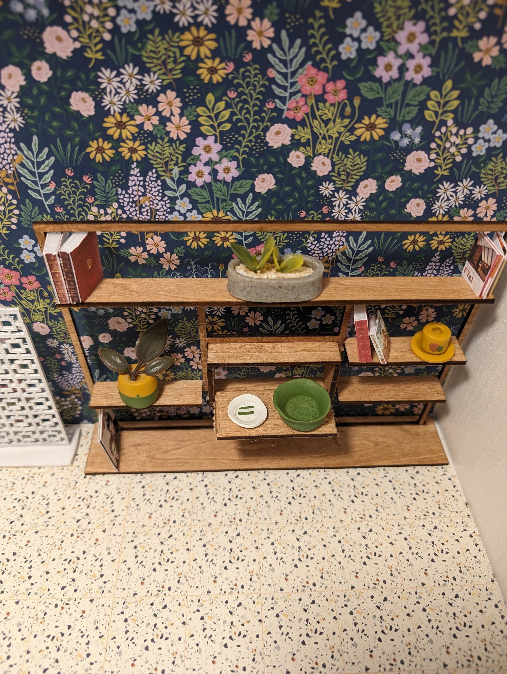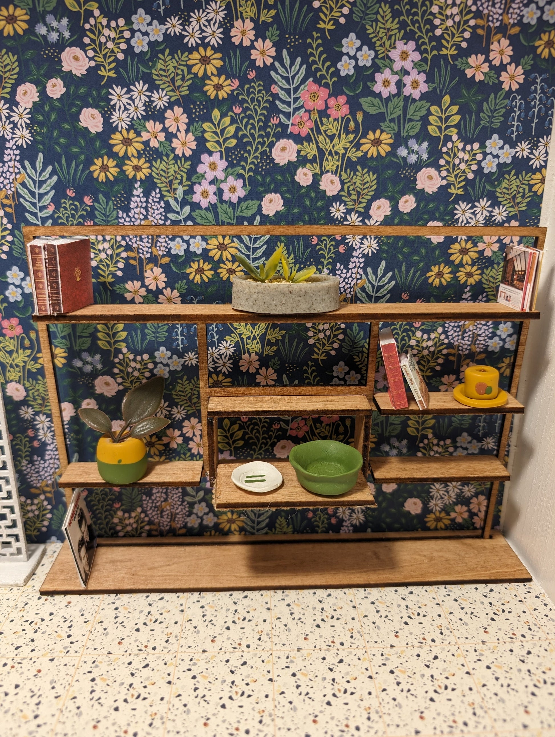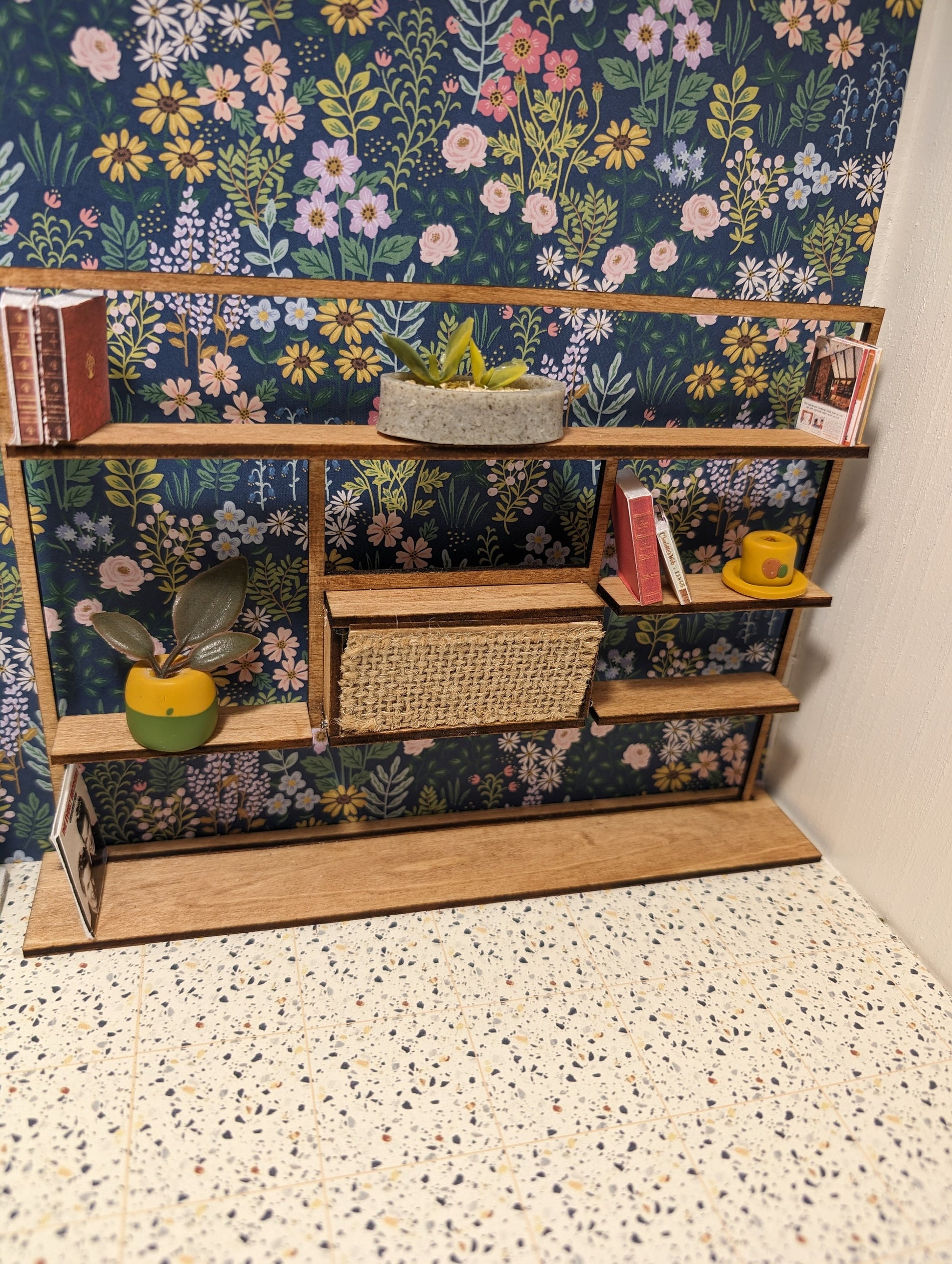 Freestanding Bookshelf - Miniature 1:12 Scale; Room Box; Dollhouse Decor