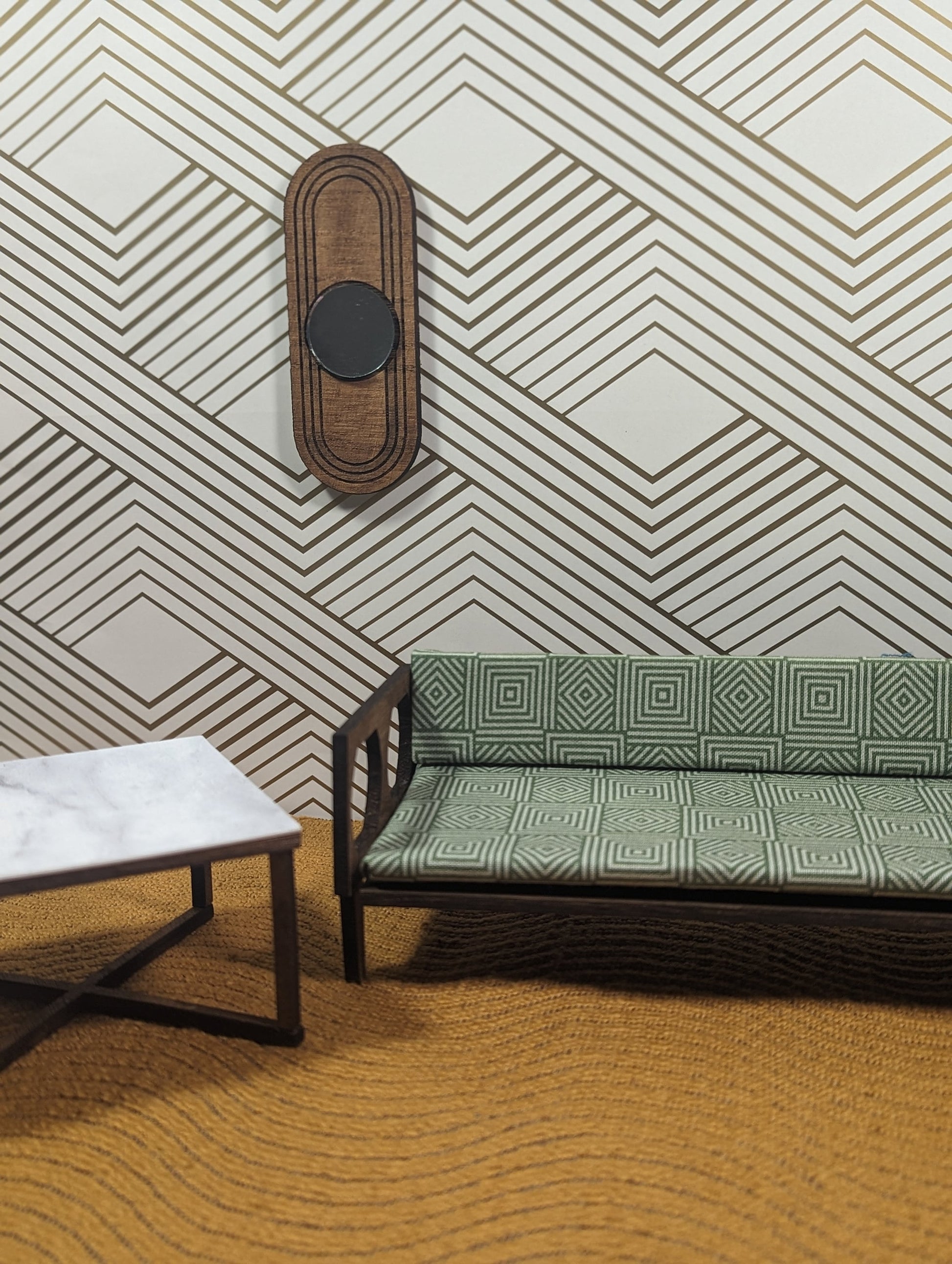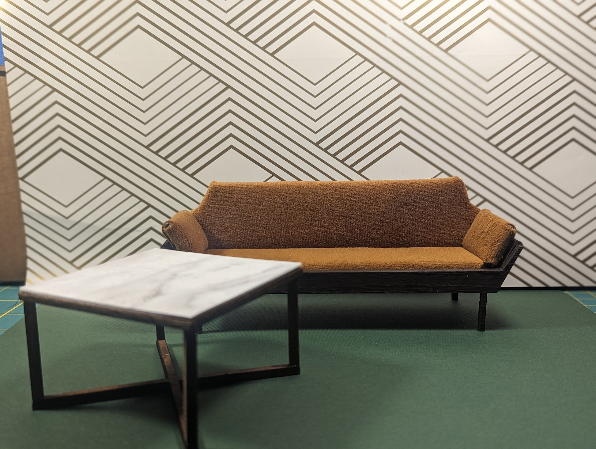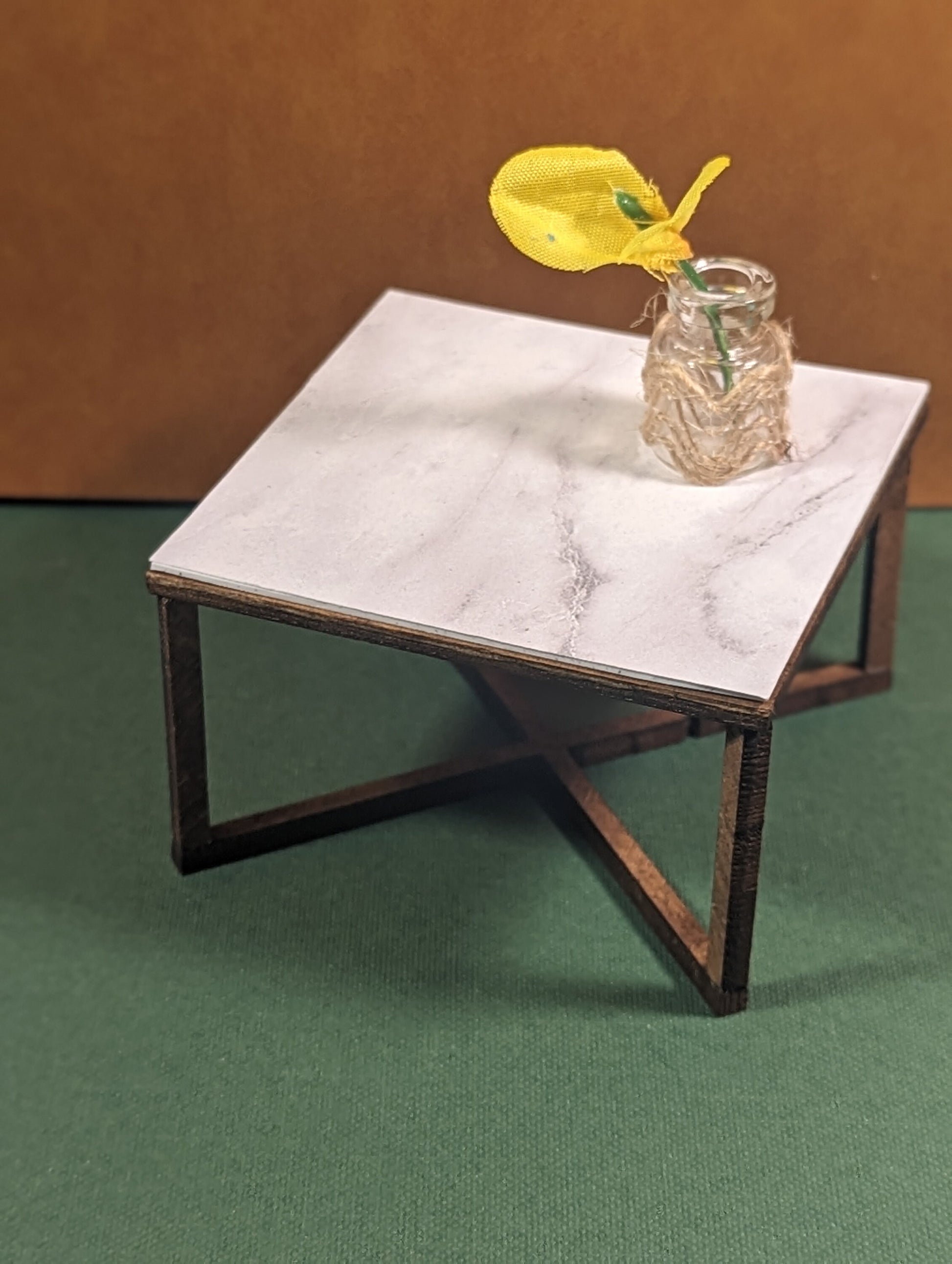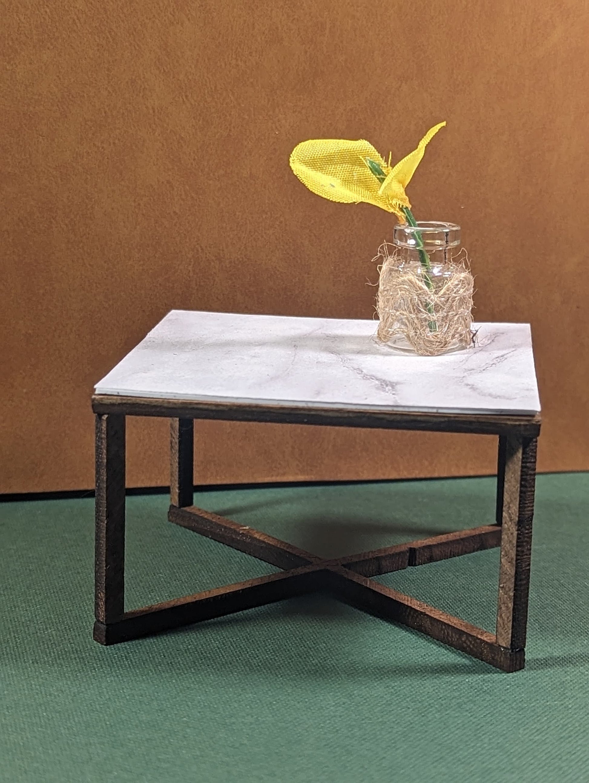 Whether you're a dollhouse enthusiast or a collector with an appreciation for mid-century design, the Mid-Century Marble Coffee Table with criss-cross legs is a stylish addition that effortlessly embodies the enduring allure of mid-century aesthetics. Elevate your miniature world with this carefully crafted piece that adds a touch of timeless luxury and a unique design element to your miniature setting.