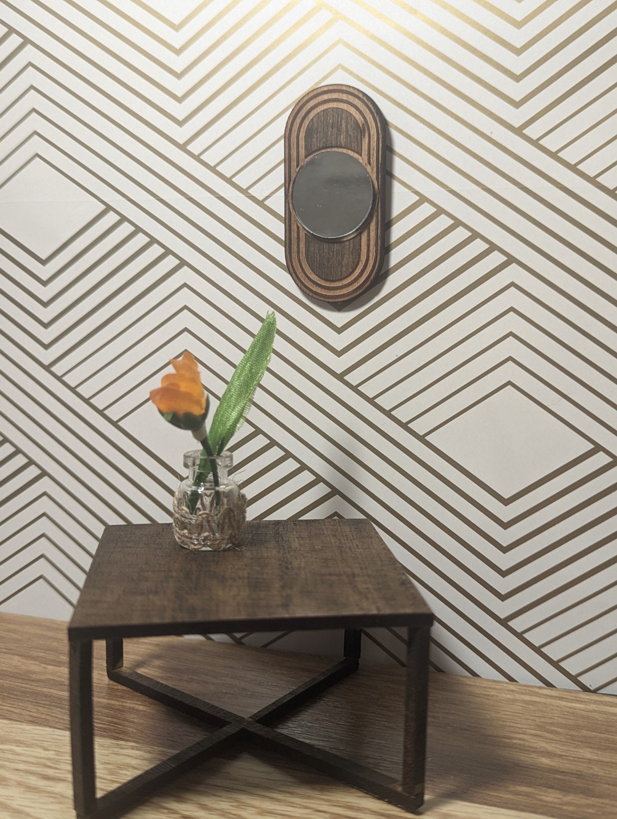 Stage the perfect mid-century modern miniature setting with this wall mirror.