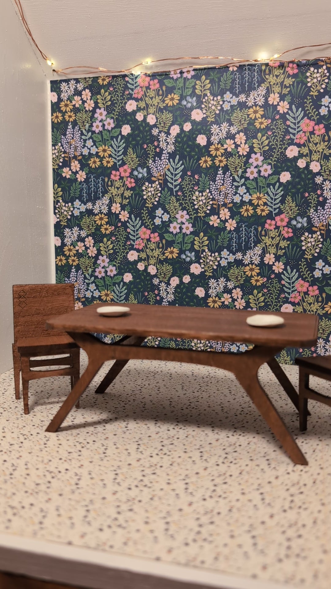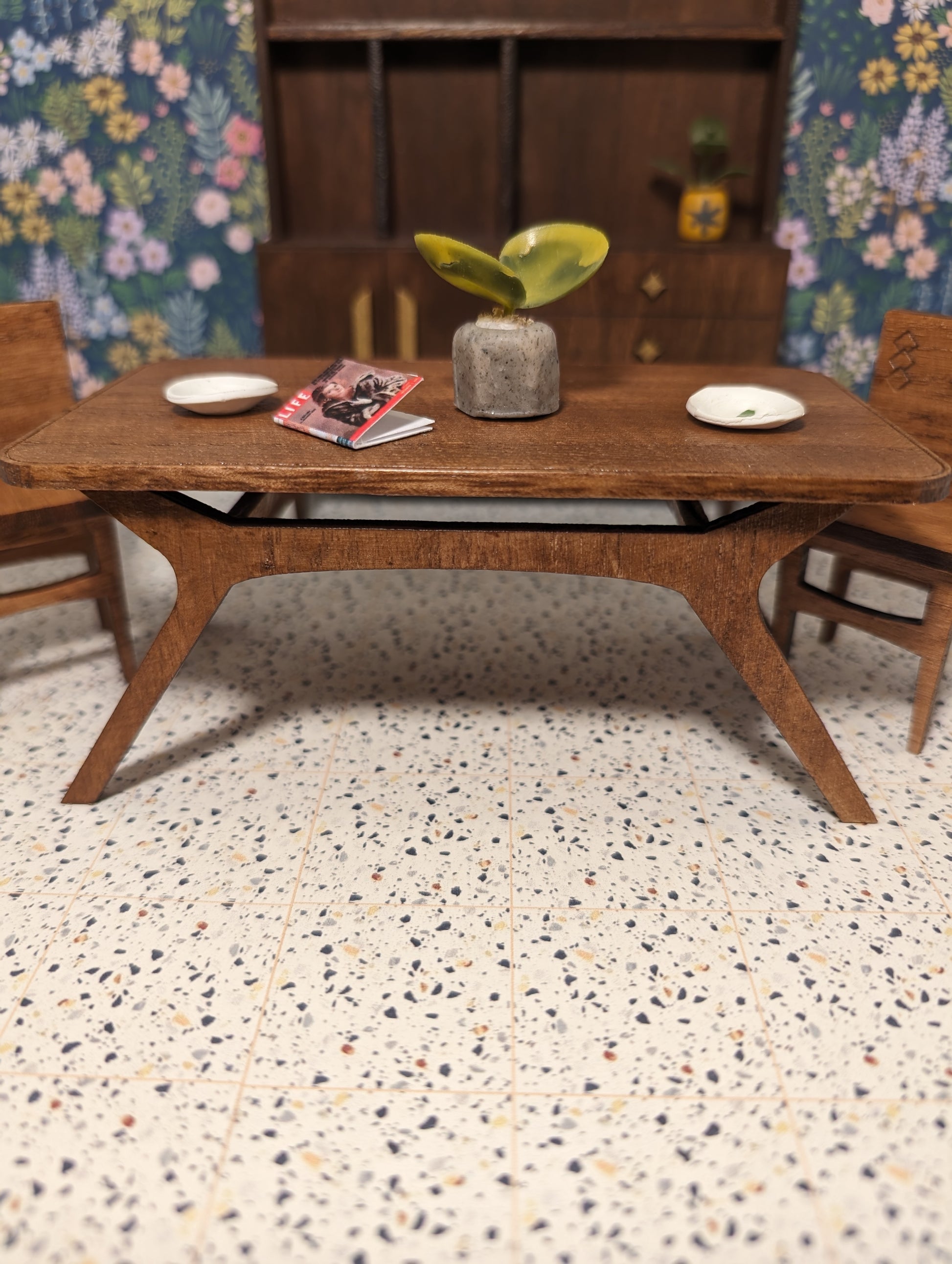 Introducing our Miniature Lane-Inspired Dining Table—a meticulously crafted 1:12 scale reproduction inspired by the classic mid-century designs of Lane Furniture. This miniature dining table pays homage to Lane's reputation for quality craftsmanship and timeless style.
