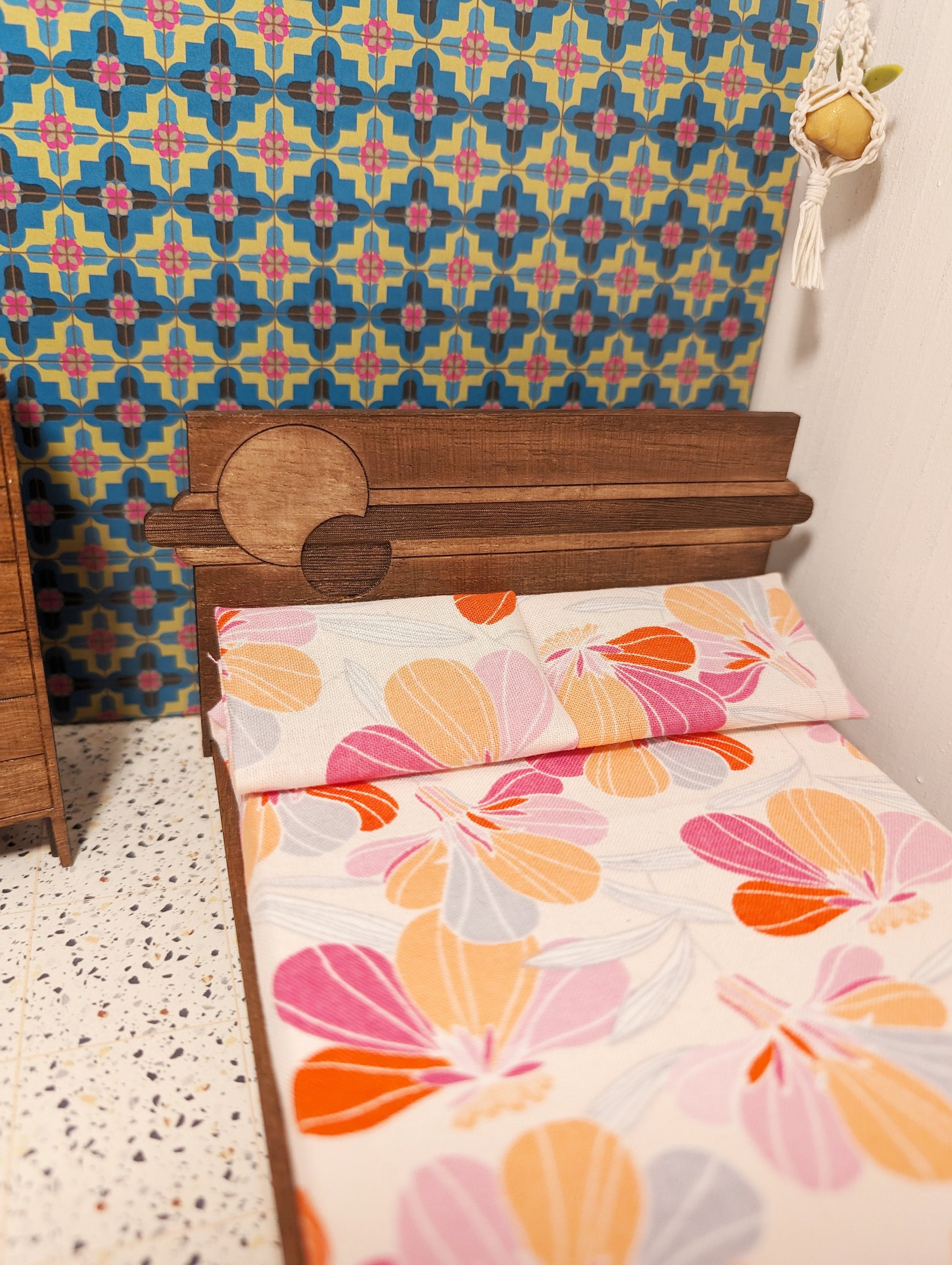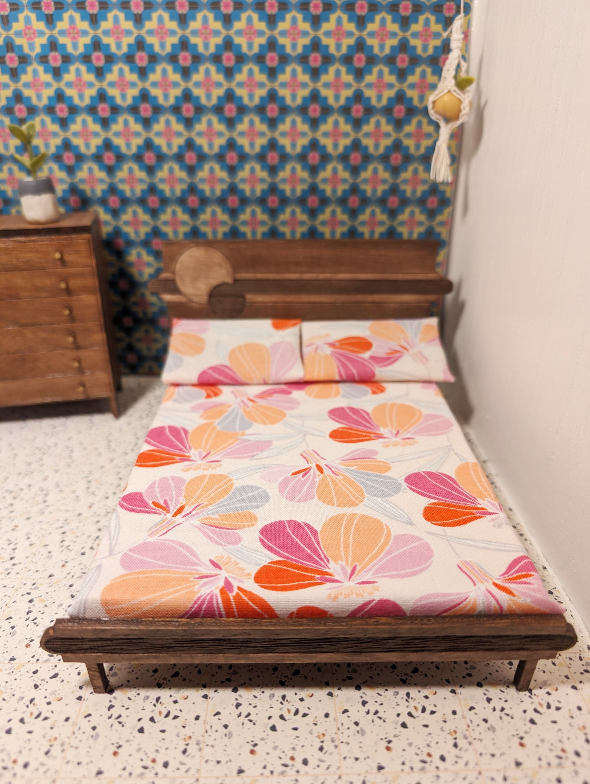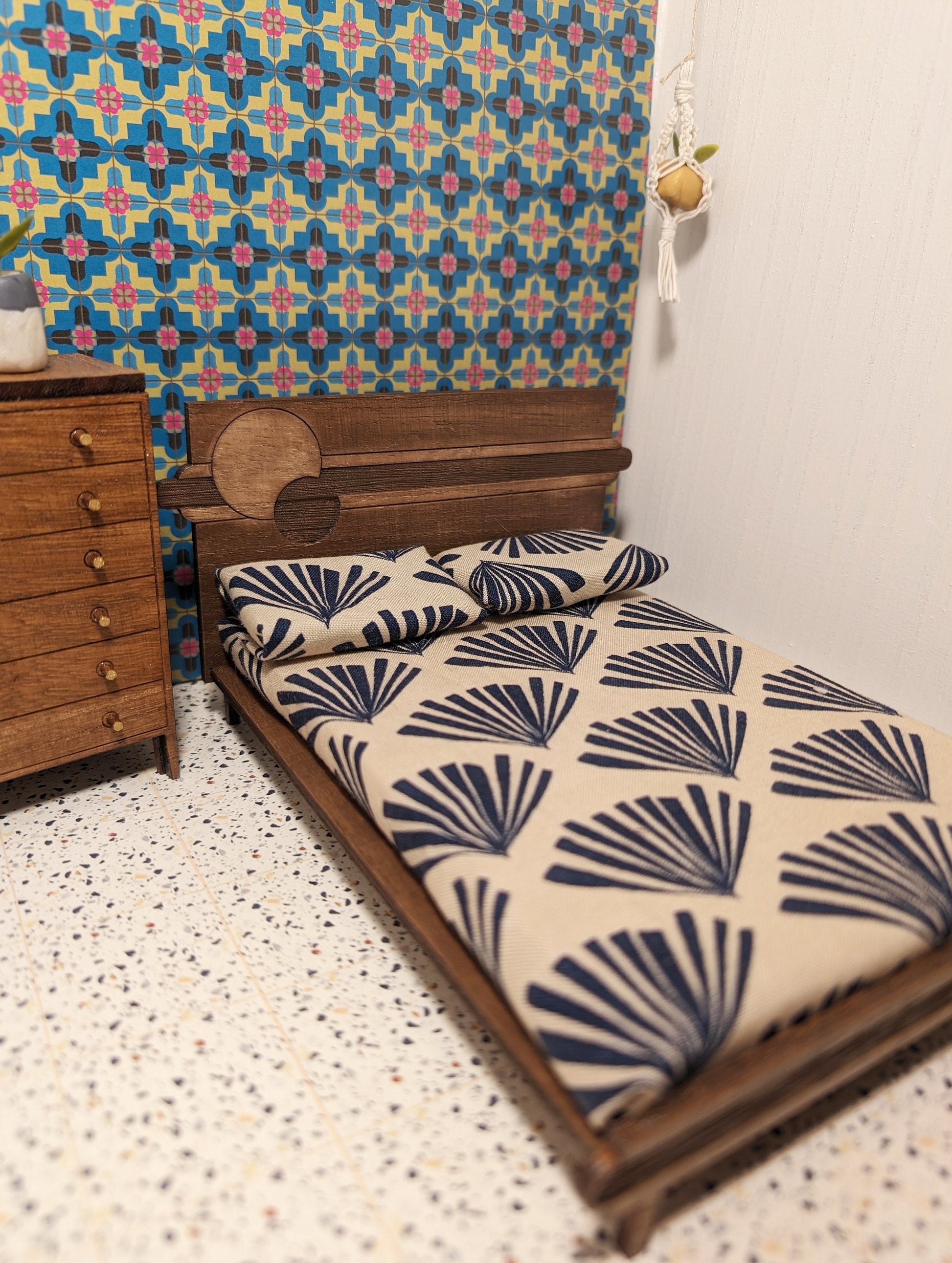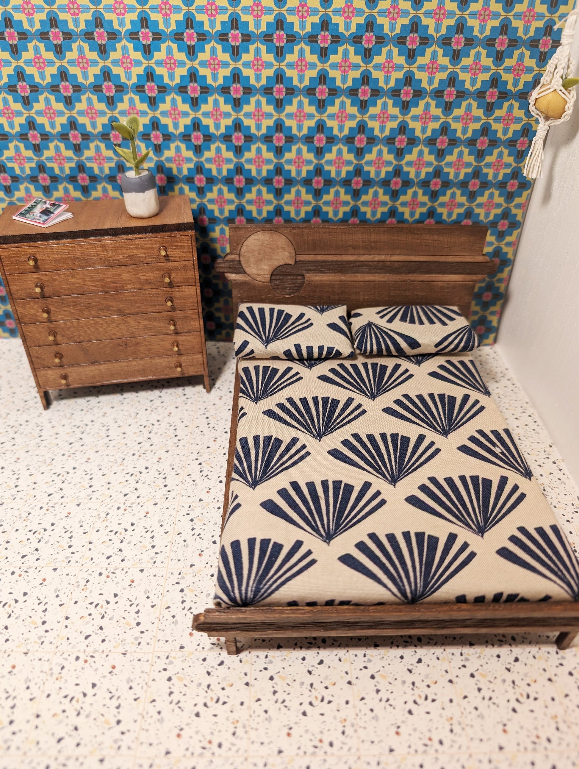 Mid Century Modern Platform Bed - Circle Art (1:12 scale miniature)