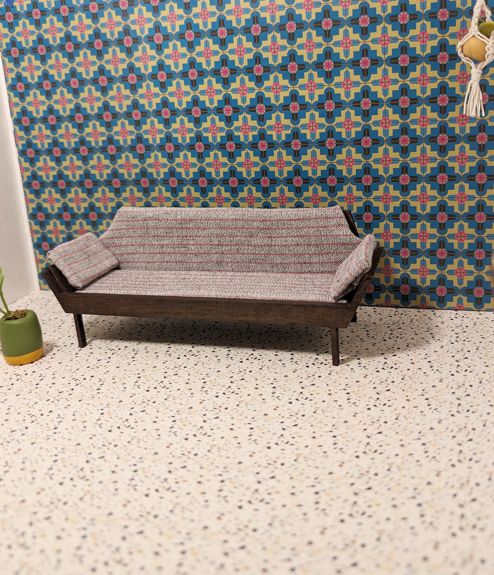 Specifically designed for a 1:12 scale mid-century style miniature, this SVG file creates an Adrian Pearsall-Inspired Couch. The files works best with 1/8" material.